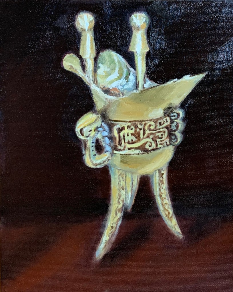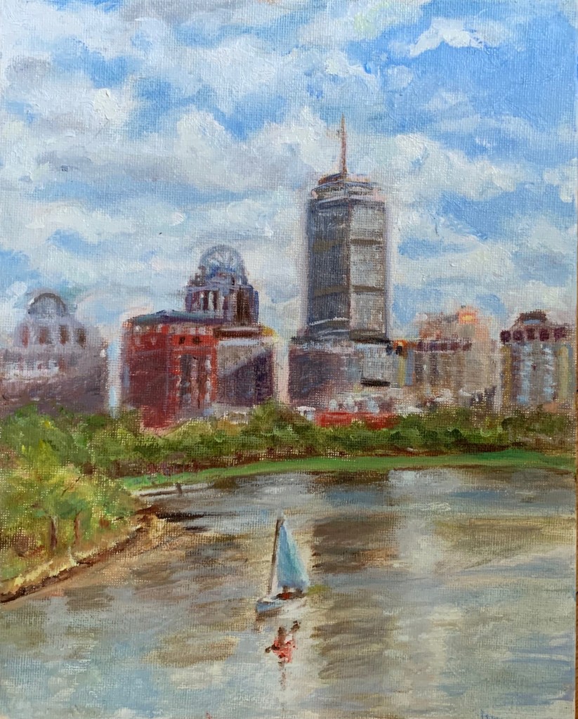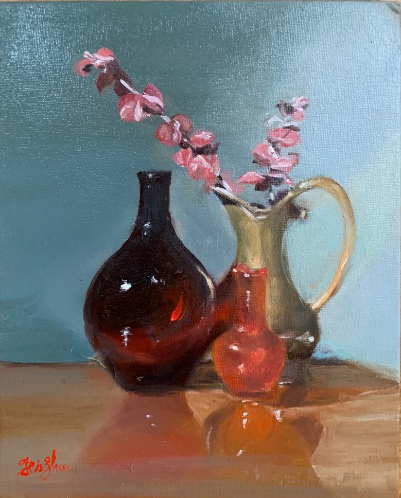 “I am Penny” Oil on Panel 12×12 Jan 2020 [Gifted]“Blue and White Porcelain” Oil on Panel 8×10 Jan 2020“Blue and White Porcelain II” Oil on Panel 8×10 Jan 2020“Metal Vessel in Still Life” Oil on Panel 9×12 Feb 2020“Penny” Oil on Panel 9×12 Feb 2020 [Gifted]“Glass Vessel Reflection in Still Life” Oil on Panel 8×10 Mar 2020“Stroll on the Rudesheim Dock” Oil on Panel 12×12 Mar 2020 [Gifted]“Walk in Peace” Oil on Panel 9×12 Apr 2020“Vessel / Fruit in Still Life” Oil on Panel 11×14 Apr 2020“Penny” Acrylic 8×10 Apr 2020“Ellie on the Sofa” Oil on Canvas 8×10 May 2020“Cardinal Feeding” Oil on Panel 8×10 May 2020“Ellie Watching a Sunset in Franconia” Oil on Panel 11×14 Jul 2020“Boston Skyline” Oil on Panel 8×10 Jul 2020“Zooming on the Dock” Oil on Panel 9×12 Jul 2020“Mimi Cat” Oil Canvas Board 8×10 Aug 2020“Ruth Bader Ginsburg Portrait” Oil on Panel 6×8 Aug 2020“Evening on a Boston Street” Oil on Panel 9×12 Aug 2020“Mimi Cat II” Oil on Panel 6×8 Sep 2020 [Gifted]“Annapurna Mountain Range” Oil on Canvas 12×24 Sep 2020“Mountains in Nepal” Oil on Canvas Pad 12×16 Sep 2020“Autumn Day in Borderland” Oil on Canvas Pad 5×12 Oct 2020 “Borderland Park in the Fall” Oil on Panel 8×10 Oct 2020“Mother and Son in the Park” Oil on Panel 9×12 Nov 2020“Dinner by Zakim Bridge” Oil on Panel 8×10 Nov 2020 (Sold)“Foggy Sunrise in the Mountains” Oil on Panel 11×14 Dec 2020“Ancient Chinese Wine Vessel” Oil on Panel 6×8 Dec 2020“Ellie and the Frozen Waterfall” Oil on Panel 9×12 Dec 2020